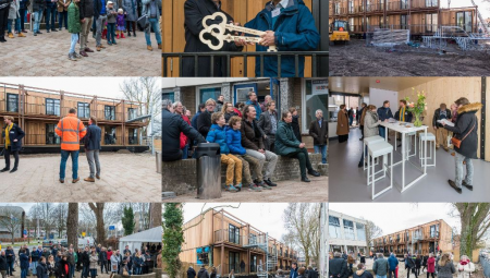 In de Leidse wijk de Kooi zijn zestien ‘houten huisjes’ gebouwd waarvan De Binnenvest er...